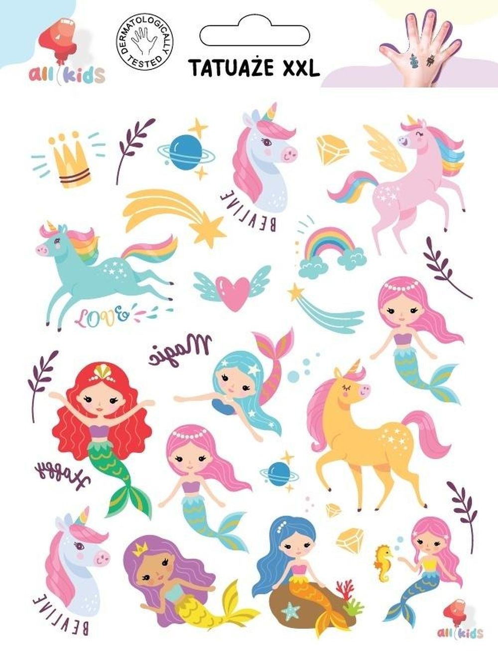 All4kids, Jednorożce syrenki, tatuaże zmywalne, XXL