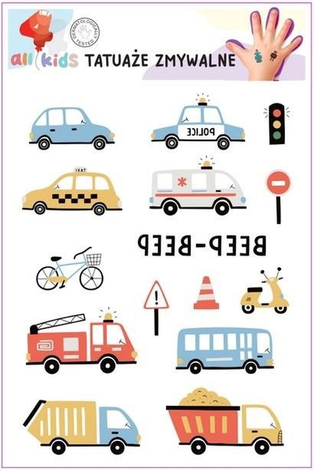 All4kids, tatuaże zmywalne dla dzieci, Auta