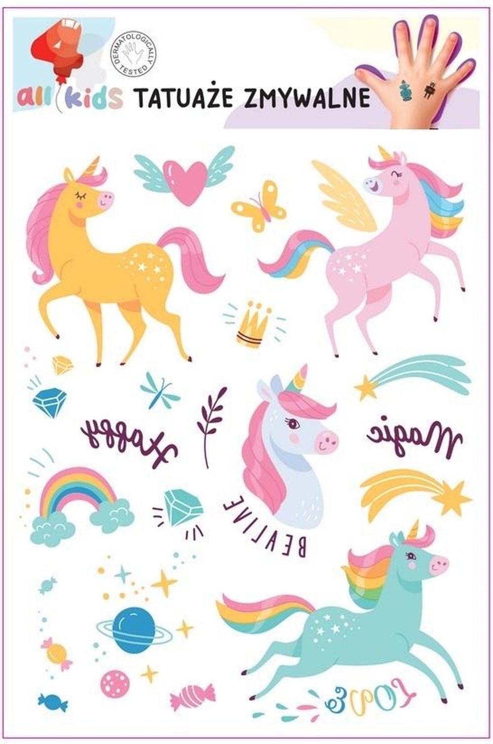 All4kids, tatuaże zmywalne dla dzieci, Tęczowe jednorożce