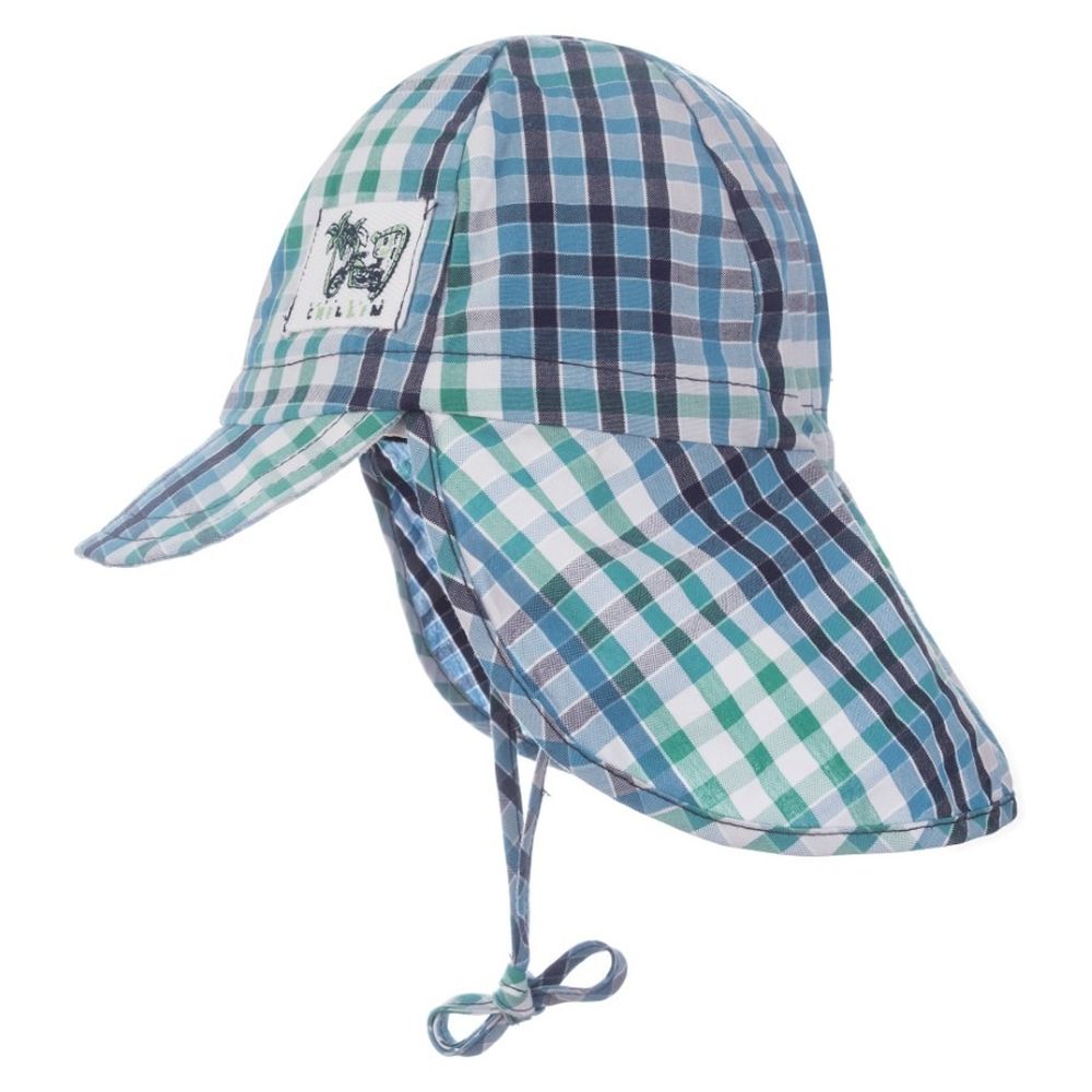 Czapka chłopięca safari, wiązana, niebieska, Döll