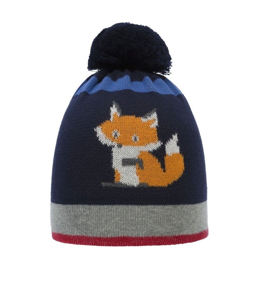 Czapka chłopięca z pomponem, granatowa, lisek, Döll