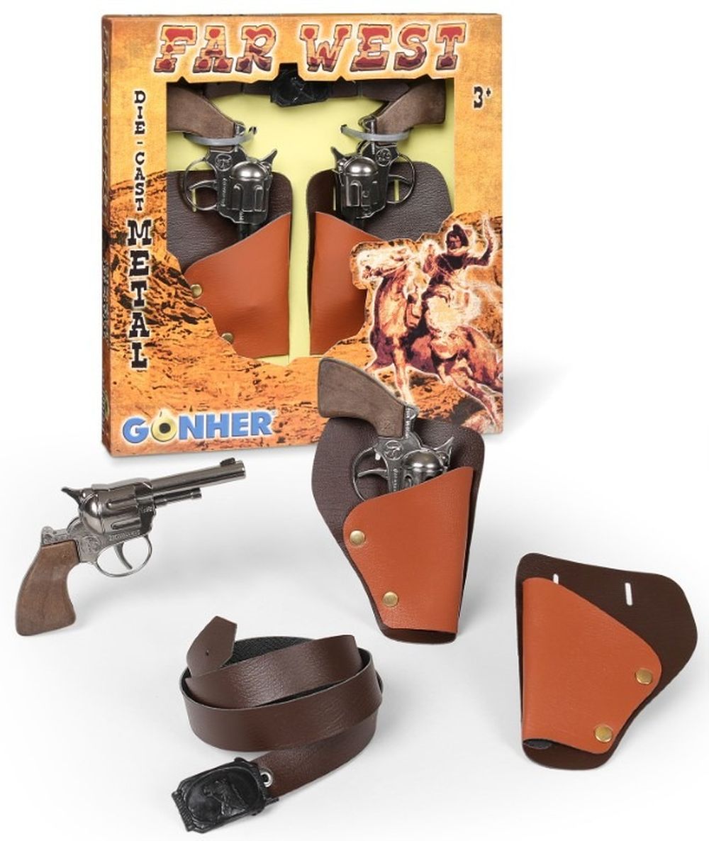 Gonher, 2 rewolwery kowbojskie z kaburą, metalowe, zestaw