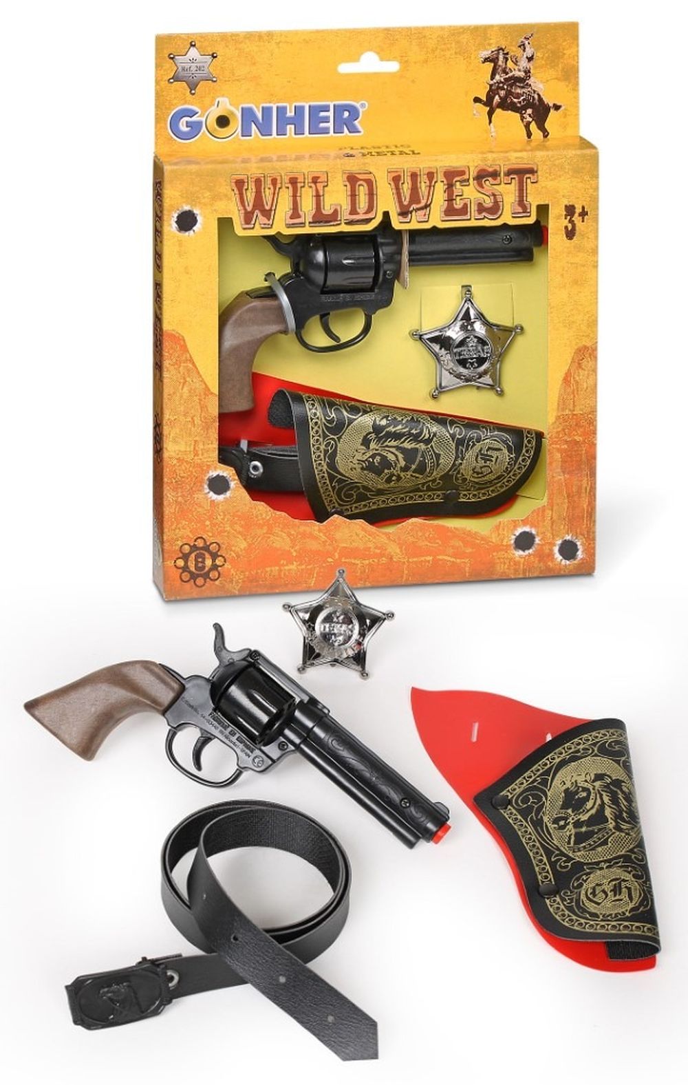 Gonher, rewolwer z kaburą odznaka, zestaw kowbojski