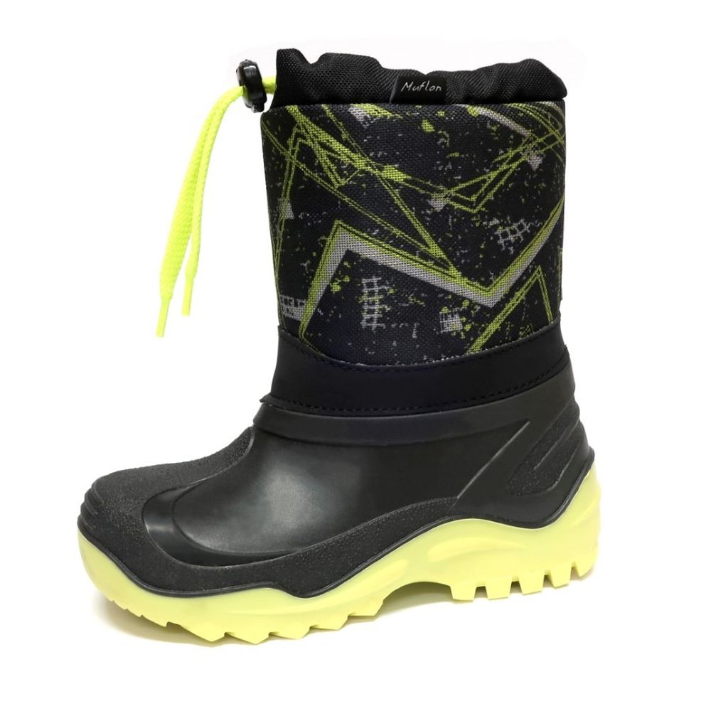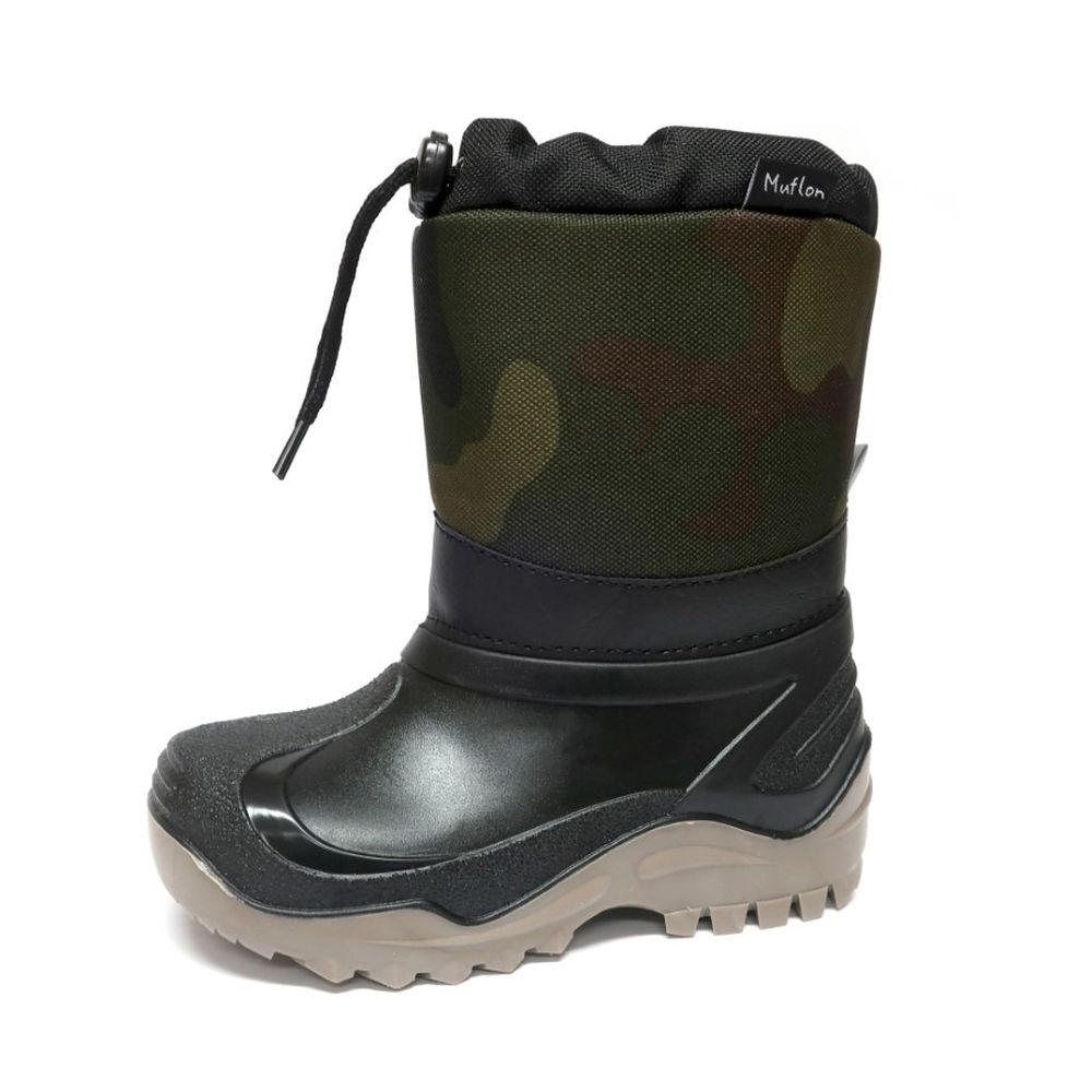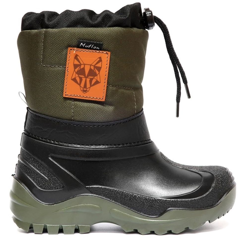 Śniegowce chłopięce z wełną, zielono-czarne, Muflon