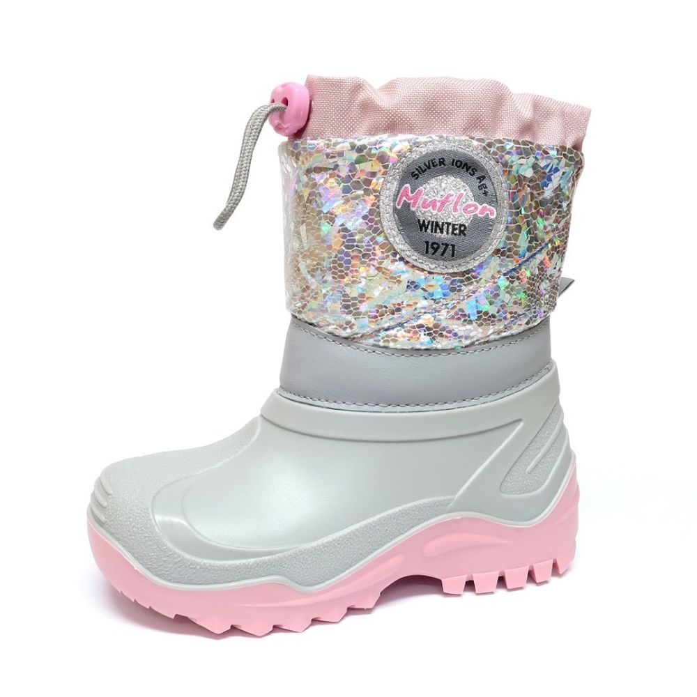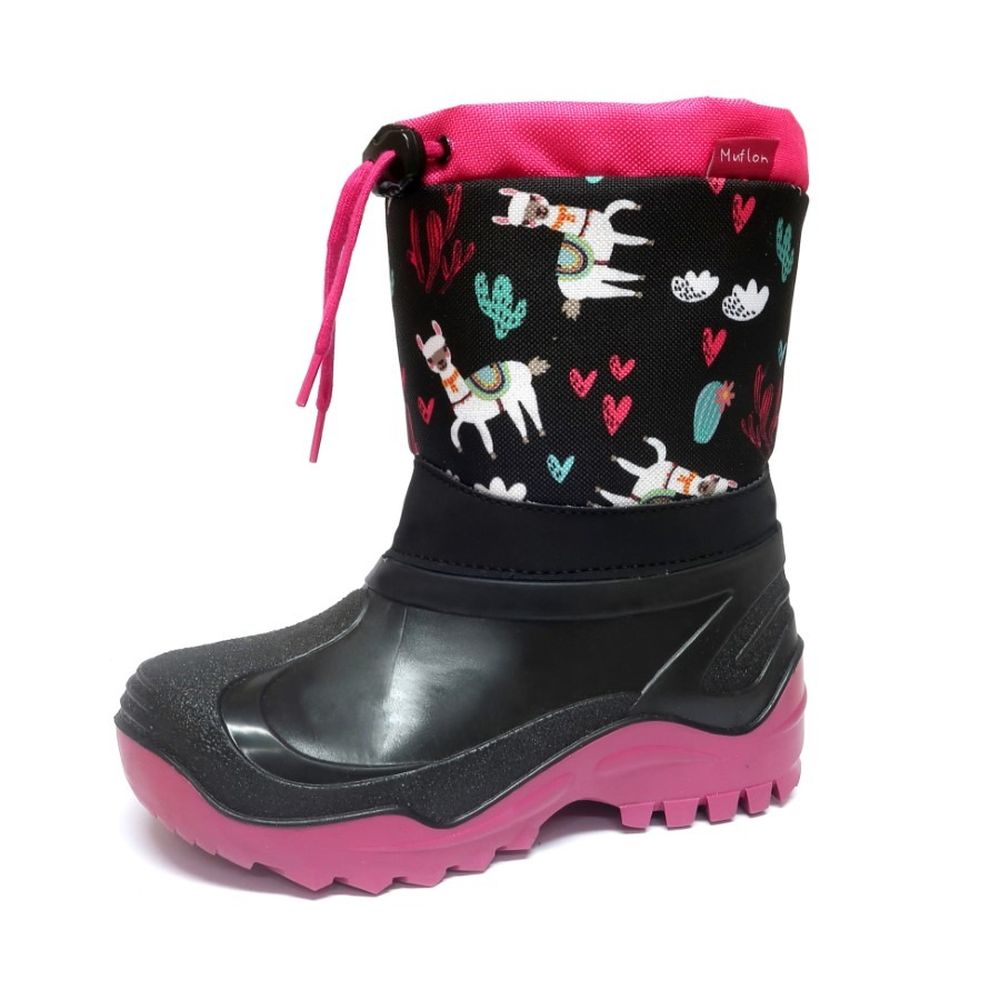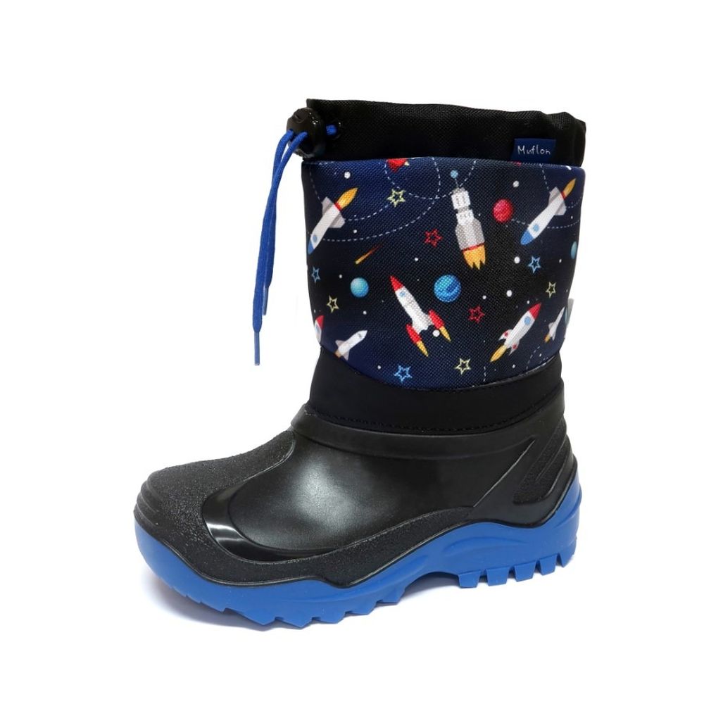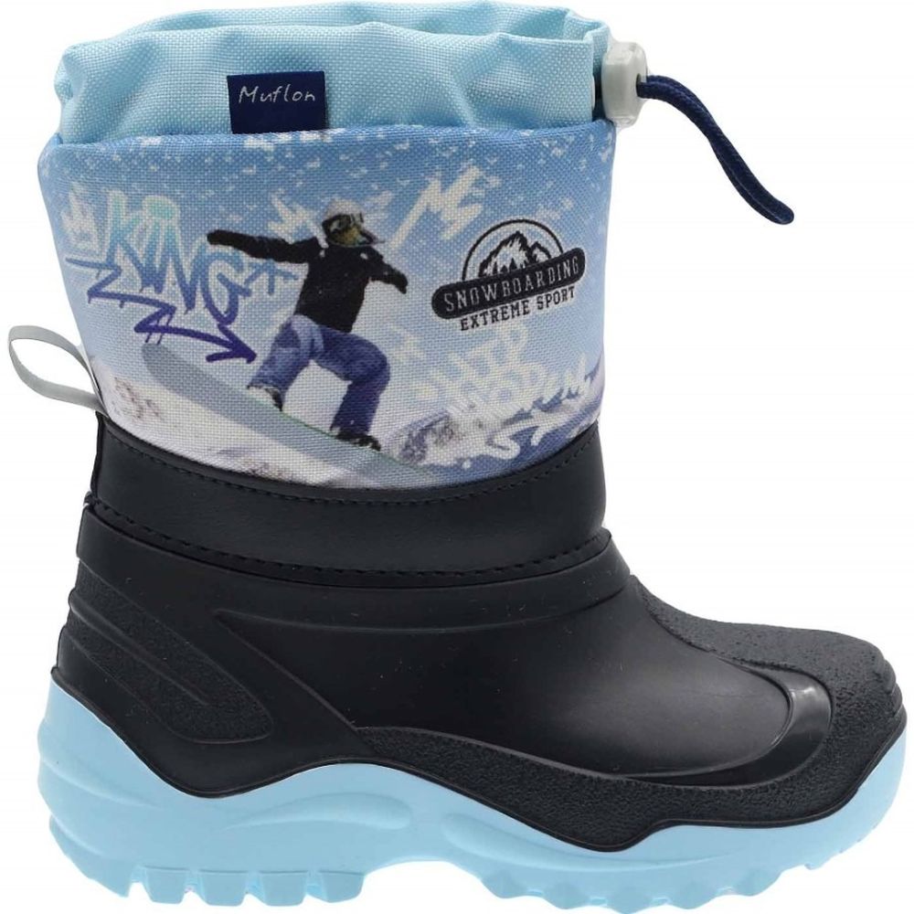 Śniegowce chłopięce z wełną, niebiesko-czarne, Muflon