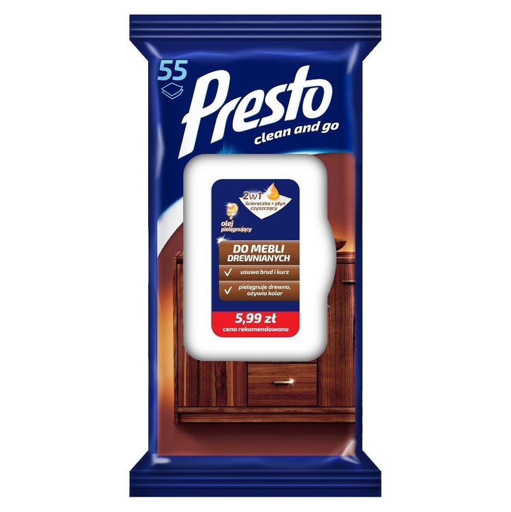 Presto, ściereczka płyn czyszczący do kuchni, 2w1, 55 szt.