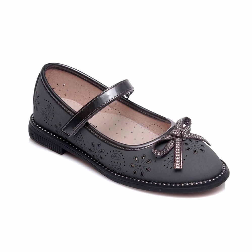 Baleriny dziewczęce, szare, skórzana wkładka, Weestep