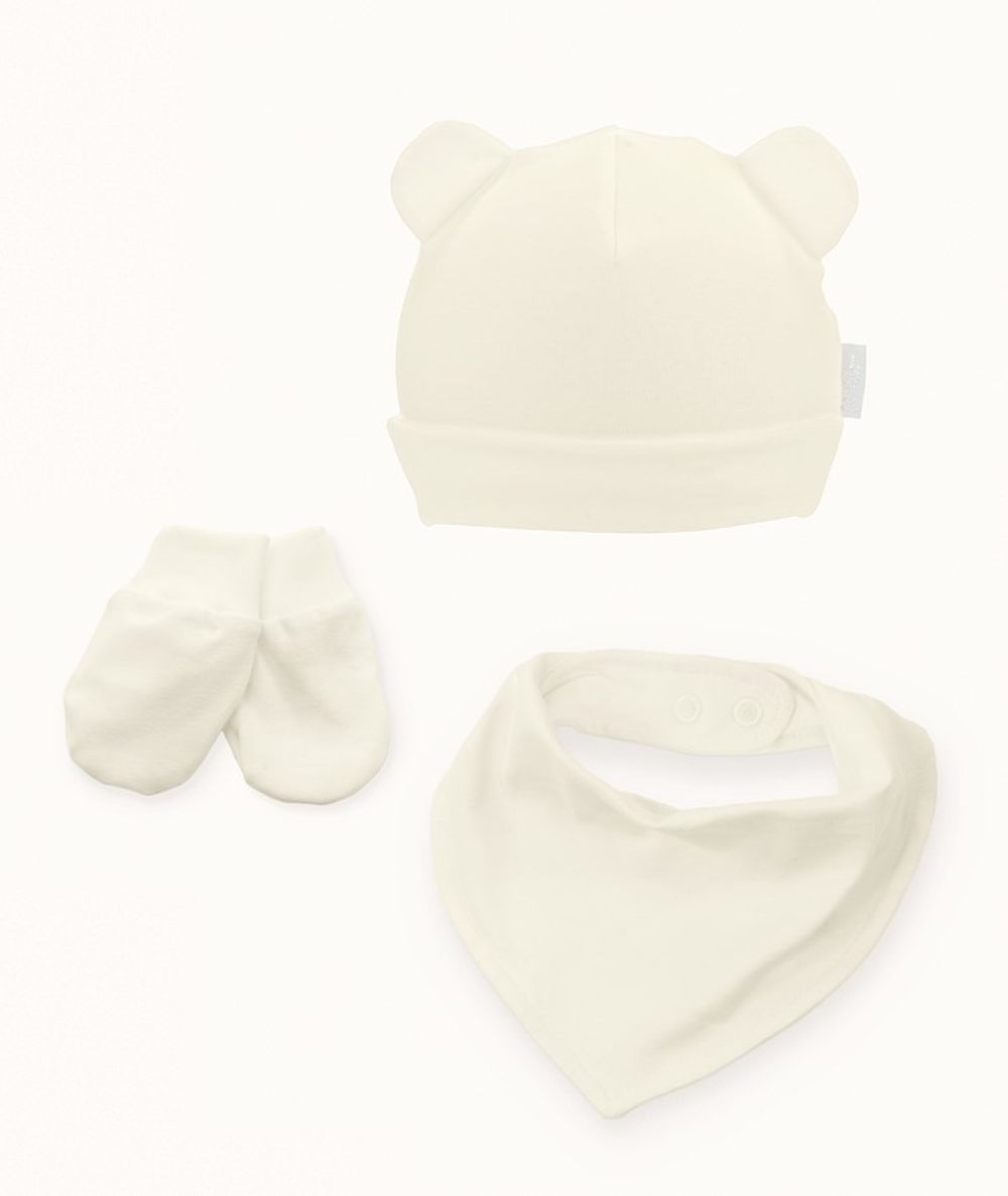 Komplet niemowlęcy, Czapka, Rękawiczki niedrapki, Apaszka, ecru, Iltom