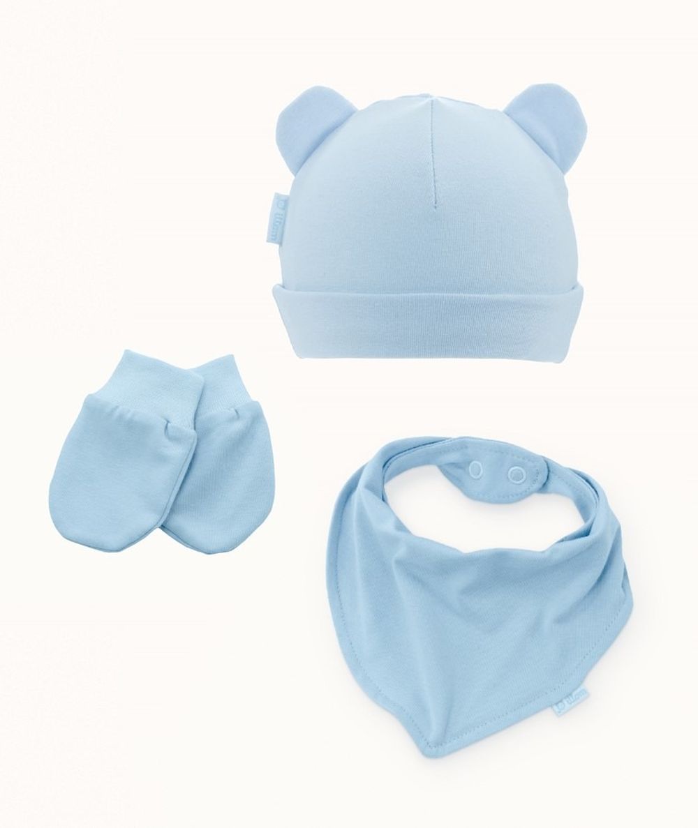 Komplet niemowlęcy, Czapka, Rękawiczki niedrapki, Apaszka, szary, Iltom