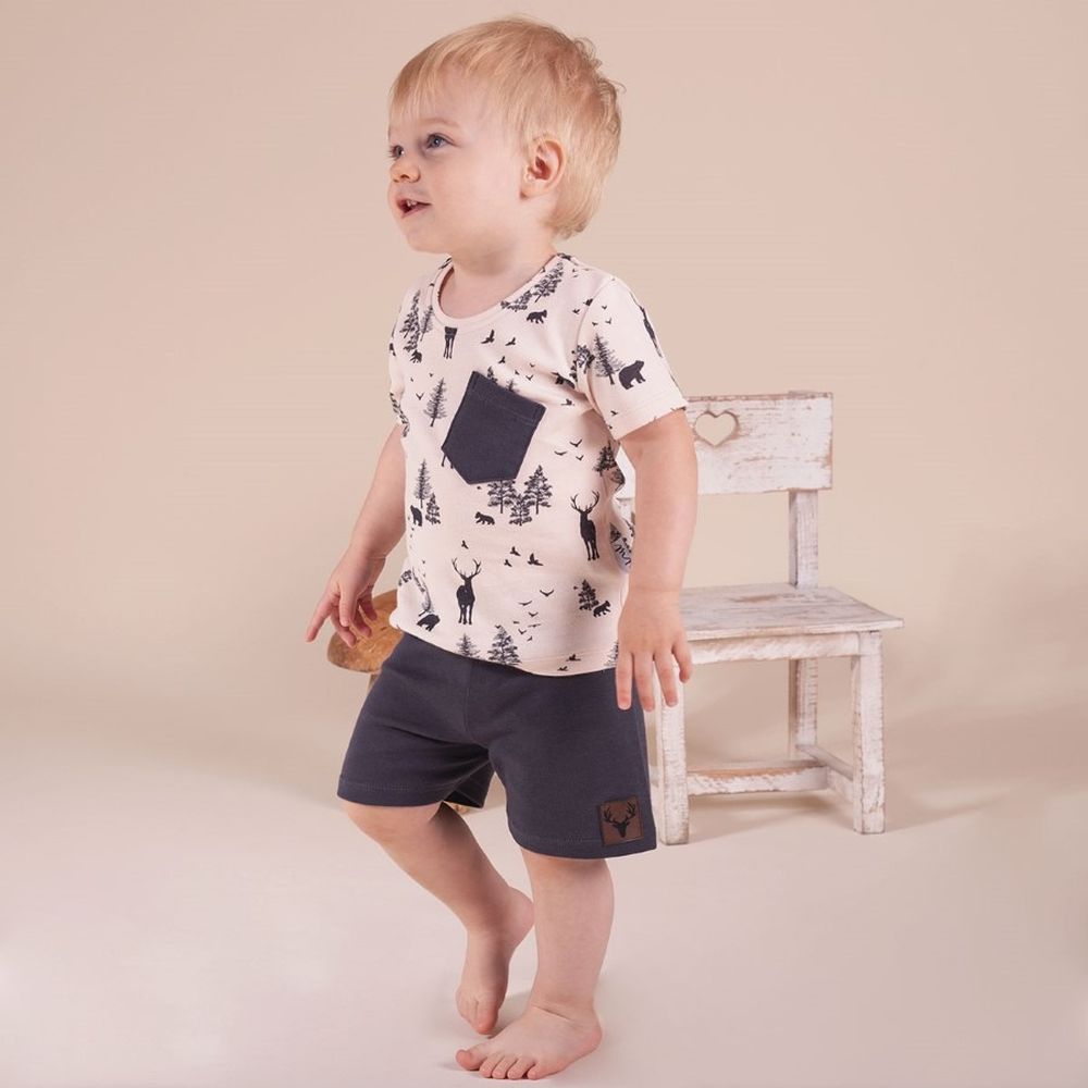 Komplet chłopięcy, T-shirt, Szorty, grafitowo-beżowy, Nicol