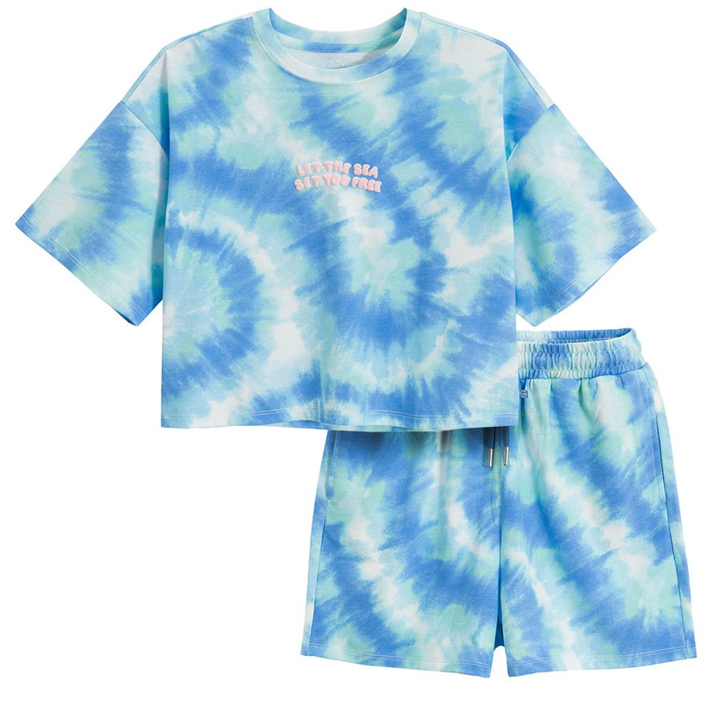 Cool Club, Komplet dziewczęcy, T-shirt, crop top, Szorty, niebieski